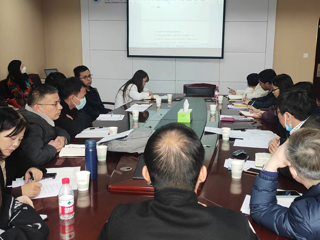 学院分管教学的罗道斌老师逐条通报了近期学校教学资料检查专家督导组的反馈意见,并就如何整改落实进行了安排部署。他指出,各教研室主任和相关责任老师要认真研读、逐条对照,要明确时间节点、责任到人,切实把专家督导意见整改到位。罗道斌还进一步明确了学院审核评估工作总体安排、工作任务分配、工作进度等相关事宜,并对学院13类教学资料归整、听课记录归档、自评报告撰写、汇报课件制作等工作进行了具体安排。
