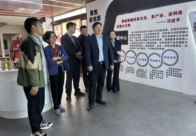 刘和林一行实地参观调研了茯茶文化博览馆、茯茶文化创新中心展厅、茯茶生物创新实验室、高校文化创新技术转化中心、京东科技直播基地等。
