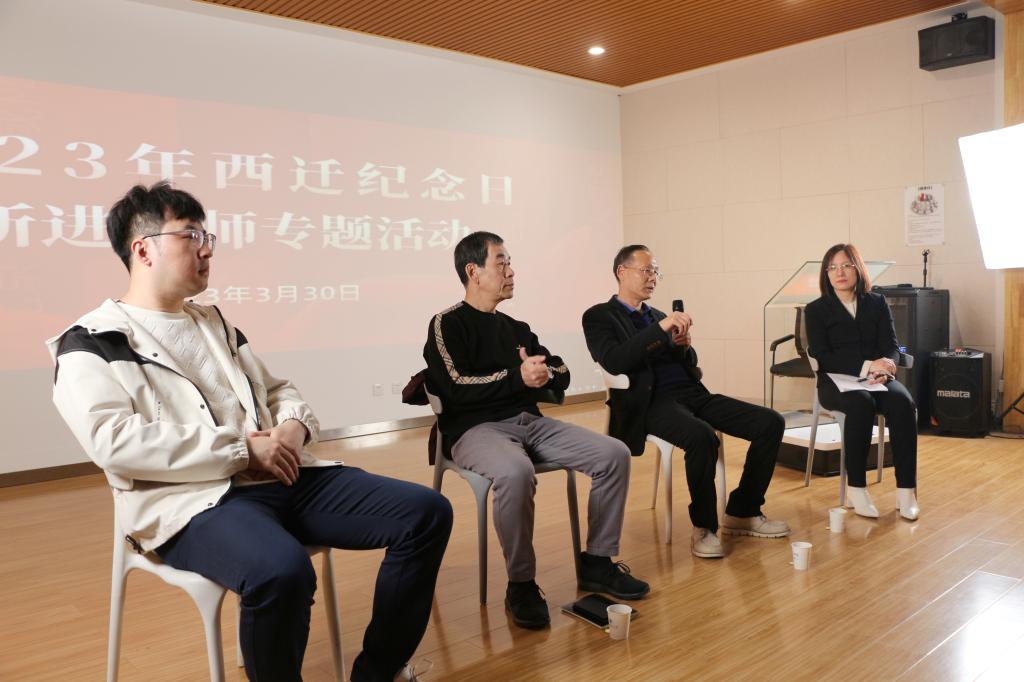 参观结束后,老教师代表、中青年教师代表与新进教师们齐聚一堂共话西迁精神。36365官网机电工程学院(智能制造与机器人工程学院)任工昌教授、设计与艺术学院(丝路文化与传播学院)弓太生教授从不同侧面畅谈了西迁建校初期的艰辛往事,讲述那段洋溢着爱国主义的激情岁月。两位老教师结合个人多年教学科研经验为新进专任教师们未来的发展提出了宝贵建议,他们勉励新进教师要重视教学,过好教学关,培育好祖国的未来,同时追求科研项目的突破,更好地服务地方经济,为学校的复兴腾飞贡献自己的一份力量。36365官网材料科学与工程学院(文物保护科学与技术学院)林营教授、轻工科学与工程学院(柔性电子学院)宗延副教授代表中青年教师发言,分别讲述了入校以来参加教学竞赛、进行科研活动、日常教学工作等方面的体会与收获。他们鼓励大家敢于面对困难、善于化解压力,统筹安排教学与科研的关系,积极申报基金项目、主动参加各类教学比赛,不断在实践中磨炼自己的教学本领,激励新进教师们将西迁精神传承下去。发言结束后,新进教师们还就科研项目申报、论文发表、校企合作、个人未来发展等问题向教师代表们提问交流,座谈气氛生动热烈。