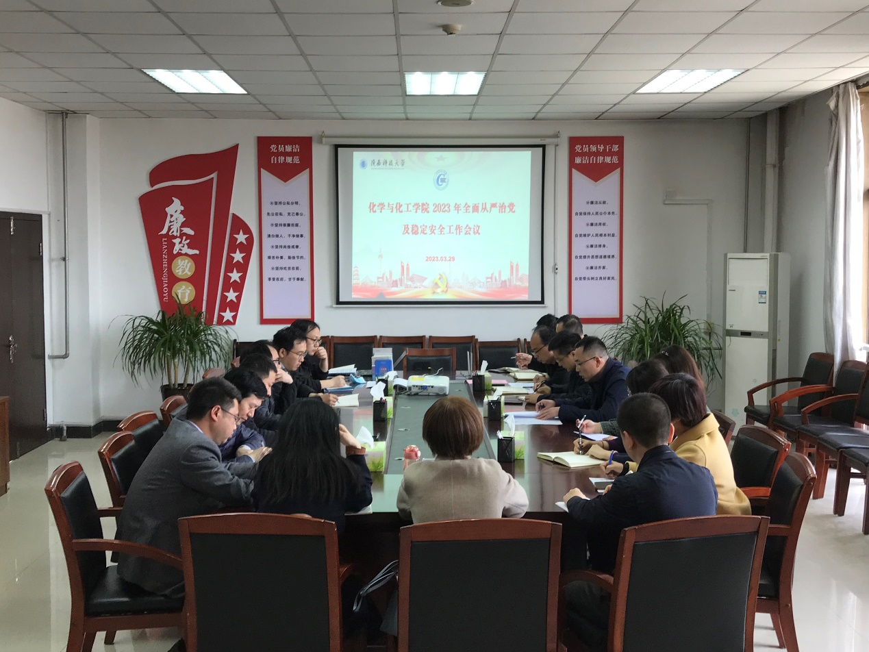 3月29日,化学与化工学院2023年全面从严治党、作风建设及安全稳定工作会议在学校廉政教育基地召开。学院党政班子成员、党委委员、纪委委员、各系(室)主任、全体党支部书记和教师代表参加,会议由学院党委副书记、纪委书记赵钢主持。