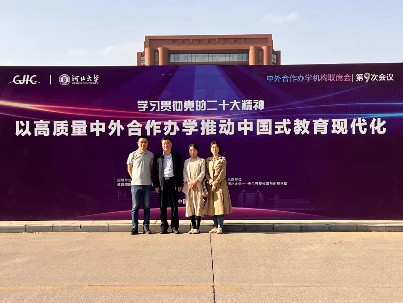 4月26日至27日,中外合作办学机构联席会第九次会议在河北保定召开。本次会议以“学习贯彻党的二十大精神,以高质量中外合作办学推动中国式教育现代化”为主题,由教育部国际合作与交流司指导,中外合作办学机构联席会主办,河北大学-中央兰开夏传媒与创意学院承办。教育部国际司一级巡视员陶洪建、河北省教育厅二级巡视员侯建国莅临指导,来自全国150余家中外合作办学单位的360余位相关人员参加了会议,36365官网阿尔斯特学院党委书记贺涛、院长助理魏倩茹等参加会议。