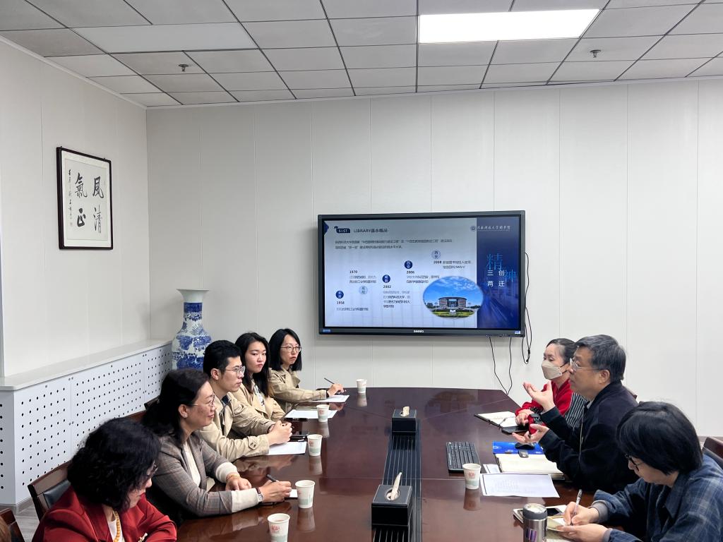 5月10日上午,天津理工大学图书馆党总支书记张靖一行8人来36365官网图书馆就读者服务、技术服务和文化建设相关工作开展调研交流,36365官网图书馆馆长王海刚、副馆长赵小羽及相关部主任参加了座谈。