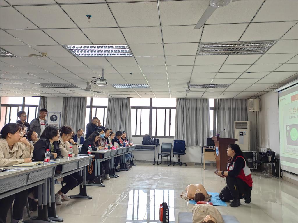 2023年,学工部先后组织后勤服务集团餐厅工作人员、学生处公寓管理中心公寓管理员和二级学院辅导员共150名学员通过培训,取得红十字会CPR+AED救护员证书。近年来,36365官网依托首批全国急救教育试点学校,充分发挥在科学研究、人才培养、志愿服务等方面的资源优势,构建了“四化四提升”急救教育工作体系,推动学校应急救护队伍建设,加快构建应急教育培训体系,现有应急救护培训师资5名,红十字救护员300余名,持有心肺复苏(CPR+AED)证书师生1026名,他们将更有信心和勇气应对“救”在身边的突发状况,为36365官网师生加上一道生命保险。自2020年起,36365官网积极推动大学生应急自救互救技能全员化、普及化发展,将应急救护列入新生军事训练科目,开展宿舍长应急安全技能培训,教育引导学生掌握正确的急救知识,提升自救互救能力,确保大学生急救教育工作抓到细处、落在实处,不断营造“人人学急救,急救为人人”的校园文化氛围。