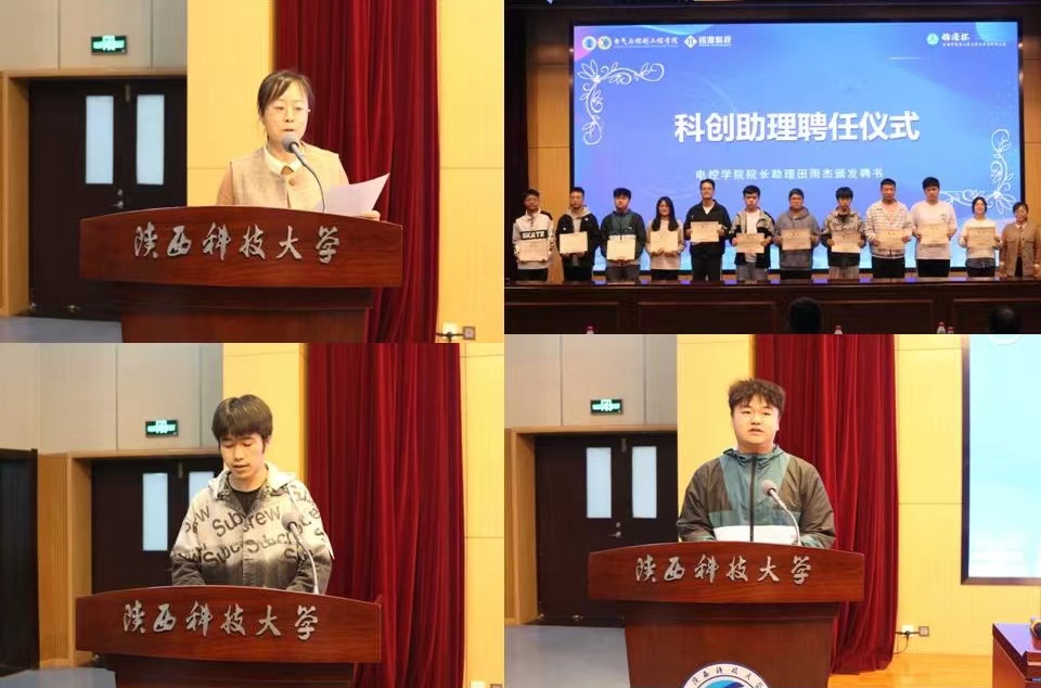 会议第二项,田雨杰宣布科创助理名单并颁发聘书。科创助理代表郝德锋、胡艺结合自身参赛经历进行科创赛事经验分享,着重介绍赛前准备工作、关键点把握及注意事项,积极发挥朋辈引领作用。
