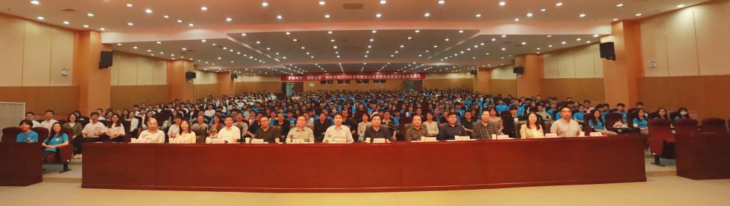 笃学精业奖获奖学生代表武敏琦讲述了她保研北大的奋斗历程,分享了四年充实且精彩的大学生活,激发广大学生勇毅前行;尚材博学奖获奖学生代表李哲洋讲述了从“放飞自我”“悬崖勒马”到享受学习的蜕变,激励广大学生奋力拼搏;获得立德力行奖的同信技术创新团队代表郭利辉以《同信技术创新团队建设路径研究》为题,讲述团队的精彩故事,鼓励广大学生仰望星空,脚踏实地;7A-219宿舍的6位同学通过演绎生活学习的情景剧,生动再现大学四年通过“比、学、赶、帮、超”实现全员携手上研、开启人生故事新篇章的场景,用实际行动解读求真致远。2022级学生带来了歌曲《倔强》《夜空中最亮的星》和朗诵《青春》表演。