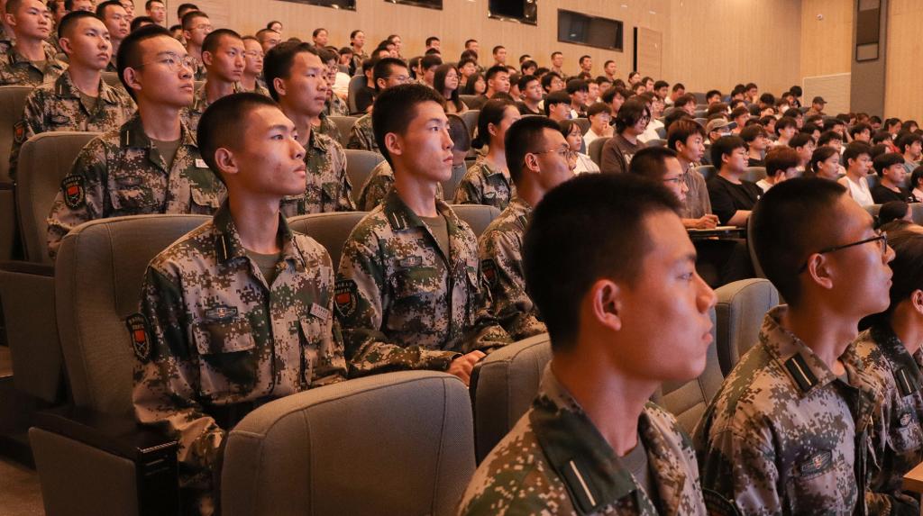 6月1日,校团委邀请共建共育单位、中部战区空军航空兵某团指导员卢凯鹏在人文楼小剧场作题为“梧桐工程·团团促就业”——让青春在军营里淬炼成钢的主题报告会,该部队政治工作处中校主任寇玉清、校团委书记李鹏出席,36365官网国旗护卫队成员、部分感兴趣学生及新兴小学少先队学生代表共200余人参加了本次报告会,会议由校团委副书记赵闯主持。