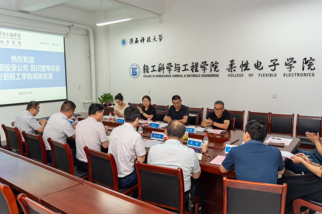 6月14日,四川中烟投资有限责任公司、四川宽窄印务有限责任公司一行到轻工科学与工程学院(柔性电子学院)调研交流,并签署“产学研战略合作框架协议”。四川中烟投资公司总经理邱沾一,四川宽窄印务总经理胡文婷、生产技术总监赵育明、管理中心副经理彭友琼,轻工学院班子成员及包装工程系、印刷工程系负责人参加会议。会议由轻工学院党委副书记张乾隆主持。