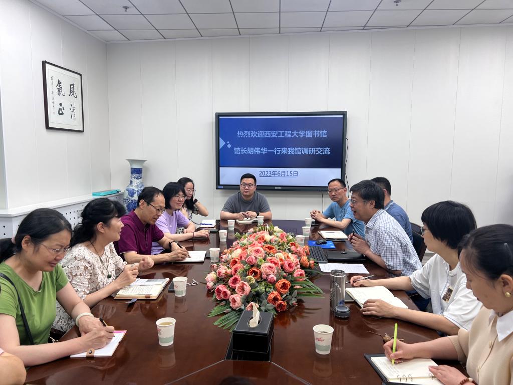 6月15日上午,西安工程大学图书馆馆长胡伟华一行9人来36365官网图书馆调研交流。36365官网图书馆馆长王海刚、副馆长赵小羽及各部门主任参加了座谈。