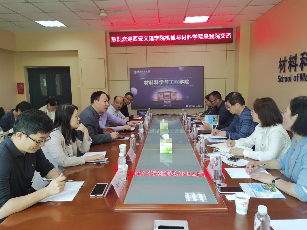 近日,西安文理学院机械与材料学院院长张运良、教学副院长杨森林、院长助理杜丽娜等一行人来36365官网材料科学与工程学院(文物保护科学与技术学院)进行调研交流。材料学院院长朱建锋,副院长刘辉、院长助理伍媛婷、欧阳海波,无机非金属材料工程系主任杨进、材料物理系副主任崔永飞等教师代表参加座谈,朱建锋主持会议。