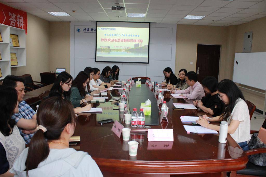 6月16日上午,文理学院邀请了西安理工大学、西安工业大学、西安邮电大学及西藏民族大学等四所高校负责研究生工作的外语学科副院长及MTI中心主任来校,组织召开了以“理工高校MTI人才培养质量”为主题的座谈会,推进主题教育走深走实。文理学院党委书记陈源梅、外语系部分研究生导师及系务会成员参加了本次座谈会。中国石油大学(华东)外国语学院院长毛浩然作为特邀专家到会指导。会议由文理学院副院长李稳敏主持。