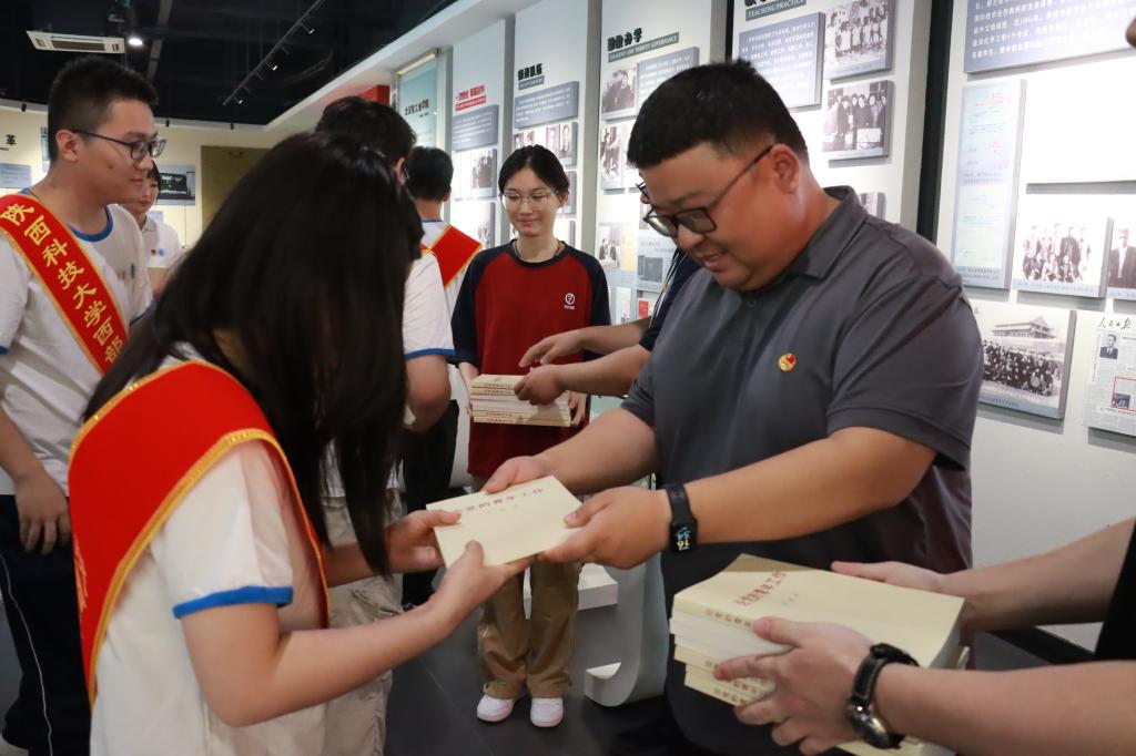 随后李鹏、赵闯为志愿者们赠送了《论党的青年工作》书籍,嘱托同学们向书本学习,牢记习近平总书记关于青年工作的重要思想,在平凡的岗位上勇于担当负责,积极主动作为,用忠诚奉献的实际行动书写新时代科大青年的责任担当。