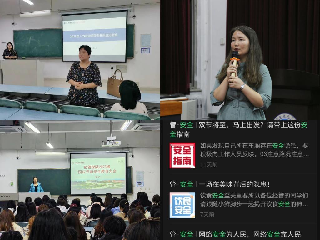 生涯护航,同上一堂“成长课”。学院整合院长助理、专业教师、辅导员等各方力量,分专业共开展6次师生见面会暨专业教育会,为新生介绍学院沿革历史、学科发展情况、师资队伍建设、毕业生就业升学情况等,让新生“零距离”感受专业魅力,提升对专业的认可度与归属感;通过官方QQ群、“管鲜事”微信公众号、“经管有你”抖音号等开展形式多样的安全纪律教育共8次,警示新生保护个人信息、谨防上当受骗;以班会、主题团日等形式开展成长规划教育,帮助新生解决适应性困难与学习困惑,以此促进新生更加合理地规划成长生涯。