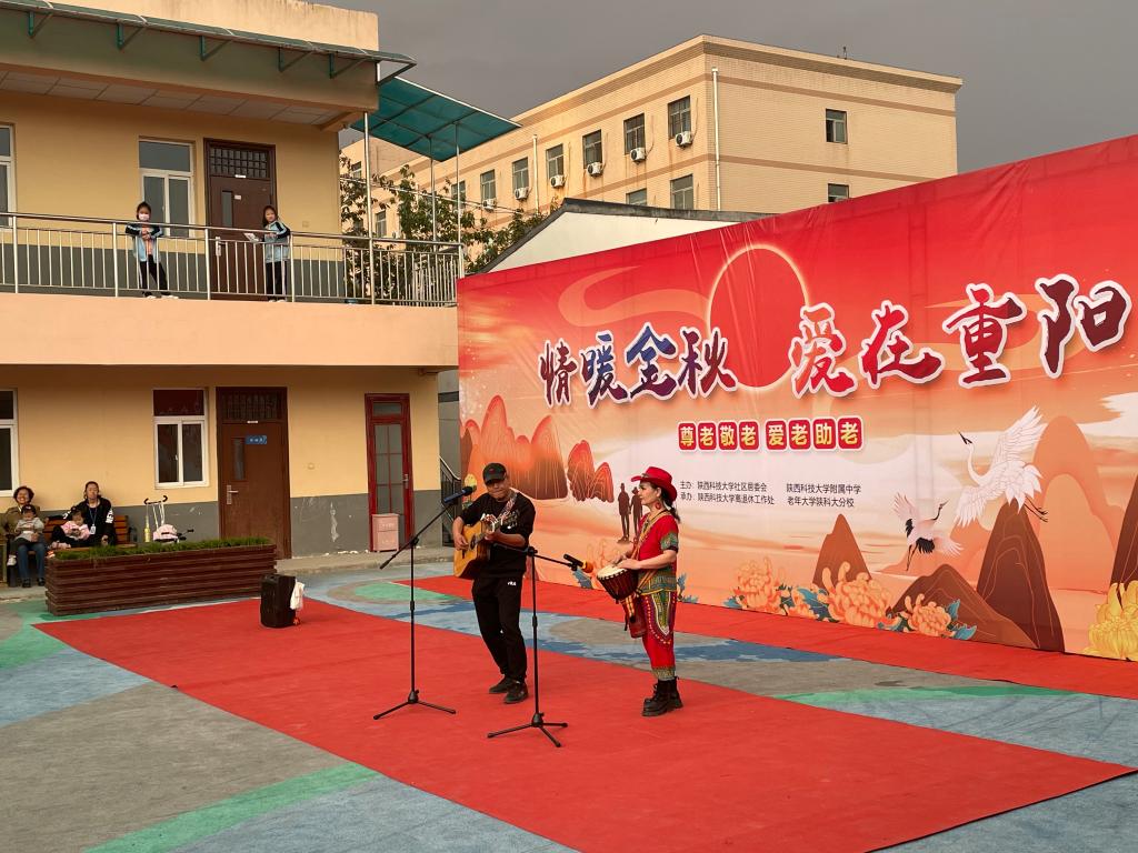 为深入学习贯彻习近平新时代中国特色社会主义思想和习近平文化思想,弘扬中华民族尊老敬老爱老助老的传统美德,营造老少共融、亲仁善邻、和谐和睦的良好氛围,在九月初九重阳节来临之际,陕科大(咸阳)社区、bet36365路检测中心附中、老年大学陕科大分校共同开展“情暖金秋,爱在重阳”主题活动,咸阳校区管委会、离退处、陕科大附中相关负责人出席汇演活动。