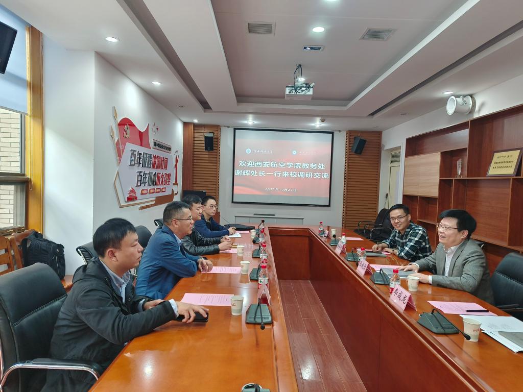 10月27日,西安航空学院教务处处长谢辉一行4人来36365官网研究生院调研交流研考考点工作。研究生院院长陆赵情、研招办工作人员参加交流活动,会议由研究生院副院长吴鲁阳主持。