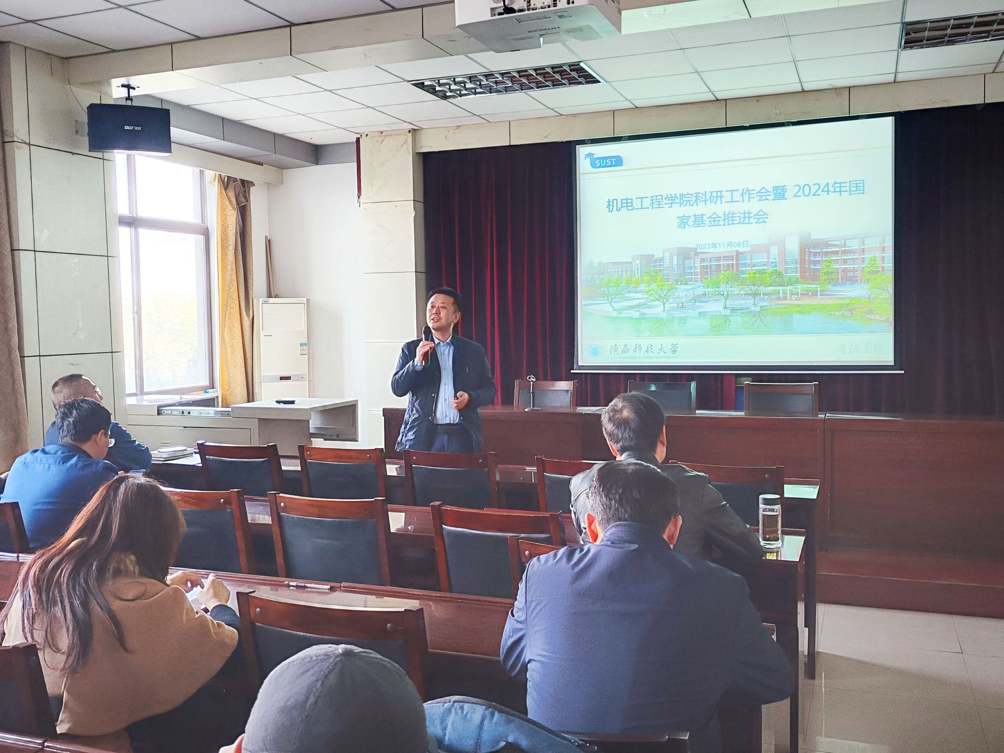 11月8日下午,机电工程学院(智能制造与机器人工程学院)召开了科研工作暨国家基金申报工作推进会。会议由学院党委书记夏祥林主持,主管科研的副院长杨立军作报告,全体教职工参加。