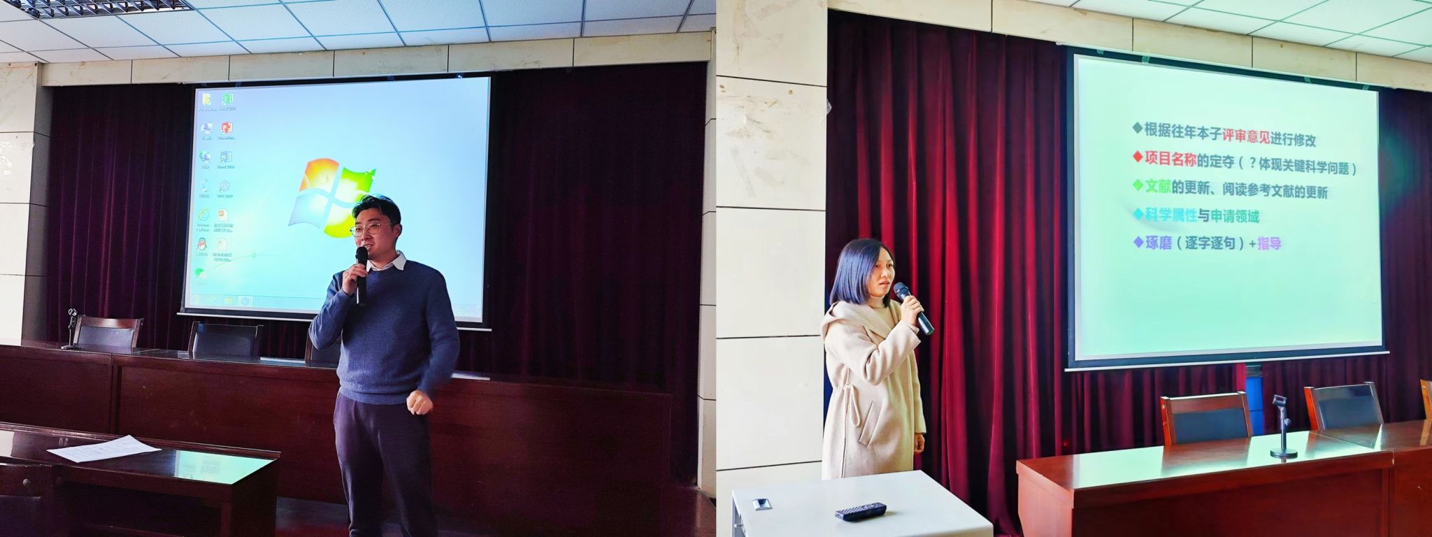 最后, 2023年获批面上项目的两位青年教师张冬旭与娄瑞分别从加强对外交流与如何提高本子质量两个方面为大家分享了基金申报工作经验。夏祥林对会议做了总结发言,指出本次会议的成功召开,进一步统一了思想,明确了方向,坚定了信心,相信将为学院全面高质量发展奠定良好的基础。