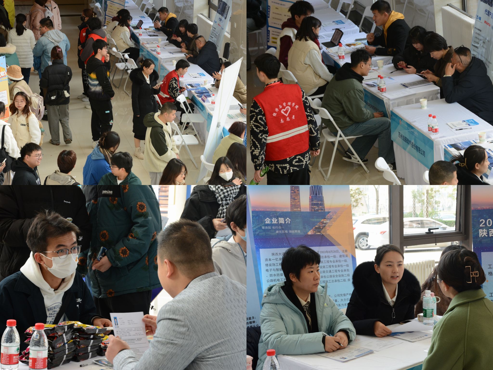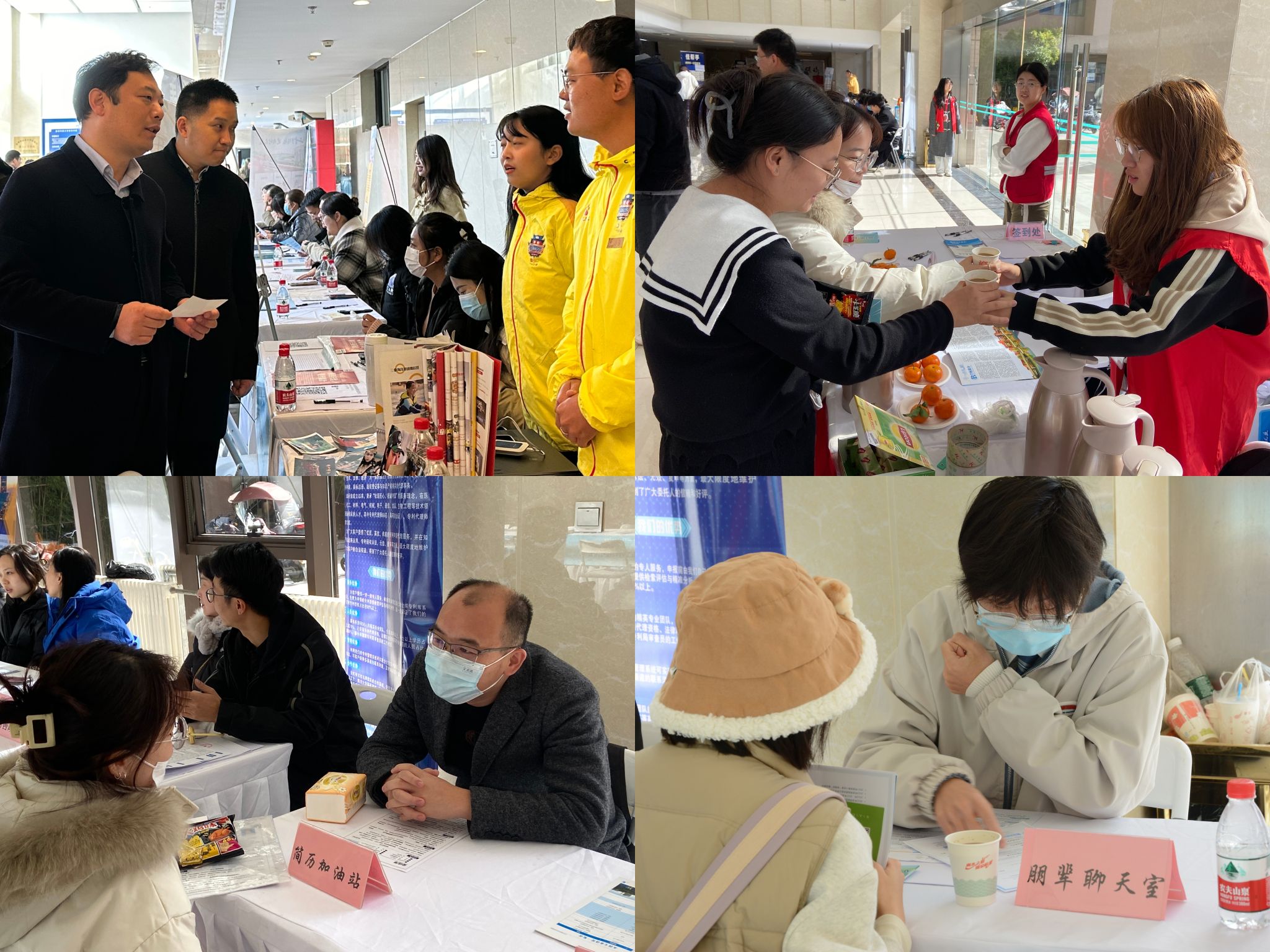 提升服务水平,实施精准帮扶。招聘会现场,学工部部长张凯凯、副部长田少宁,学院领导班子等与用人单位面对面交流,对用人单位到校招聘表示热烈欢迎,并了解各单位岗位设置、招聘人数、报名人数等情况。2024届毕业生积极与招聘人员交流,主动了解用人单位需求,部分低年级学生也来到现场,提前了解企业招聘流程。为提高毕业生应聘技能,现场特别设置了“简历加油站”和“朋辈聊天室”专区,由经验丰富的辅导员、已就业学生提供精准化指导意见和针对性帮扶方案,为毕业生就业全面赋能。