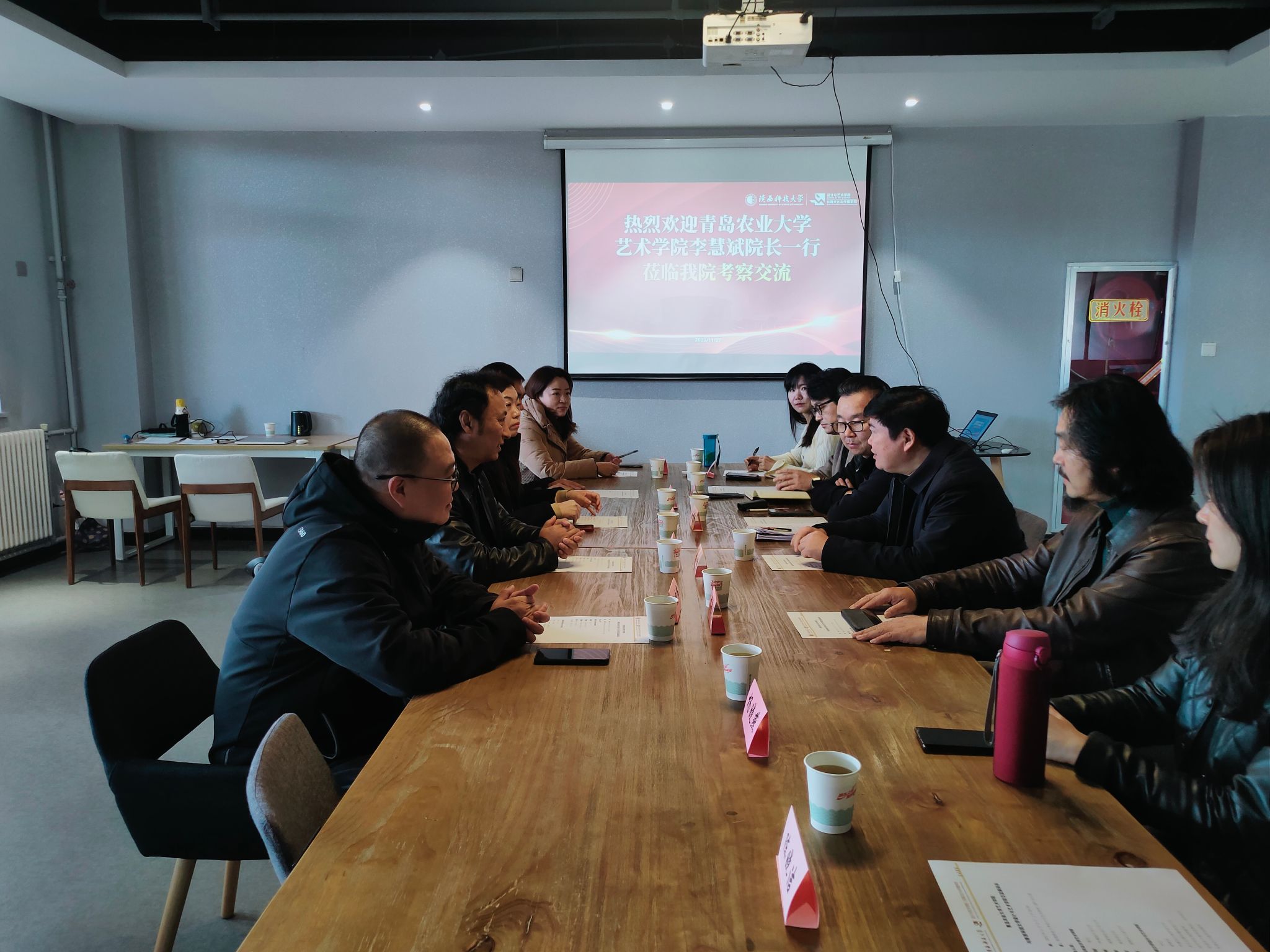 11月27日,青岛农业大学艺术学院院长李慧斌一行5人来设计与艺术学院调研交流。设艺学院党委书记刘和林、学科带头人詹秦川、副院长米高峰、相关教研室主任等参加了交流活动,米高峰主持会议。