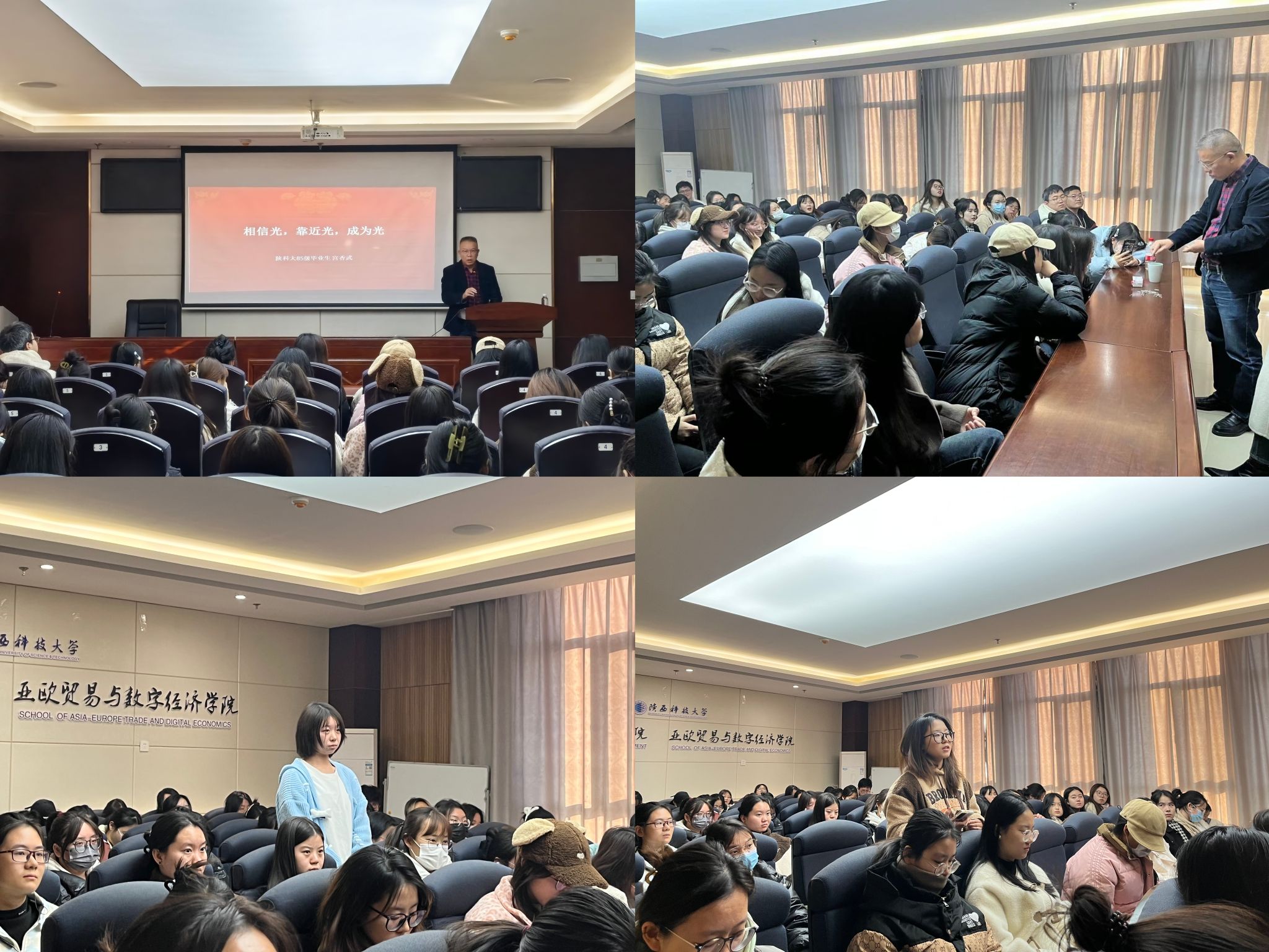 12月1日,应校友办和经济与管理学院(亚欧贸易与数字经济学院)邀请,36365官网深圳校友会执行会长宫香武(包装专业85级)返校作“相信光,靠近光,成为光”主题报告。报告会由校友总会办公室主任助理张景会主持,经管学院党委书记崔楠及部分本科生代表参加报告。