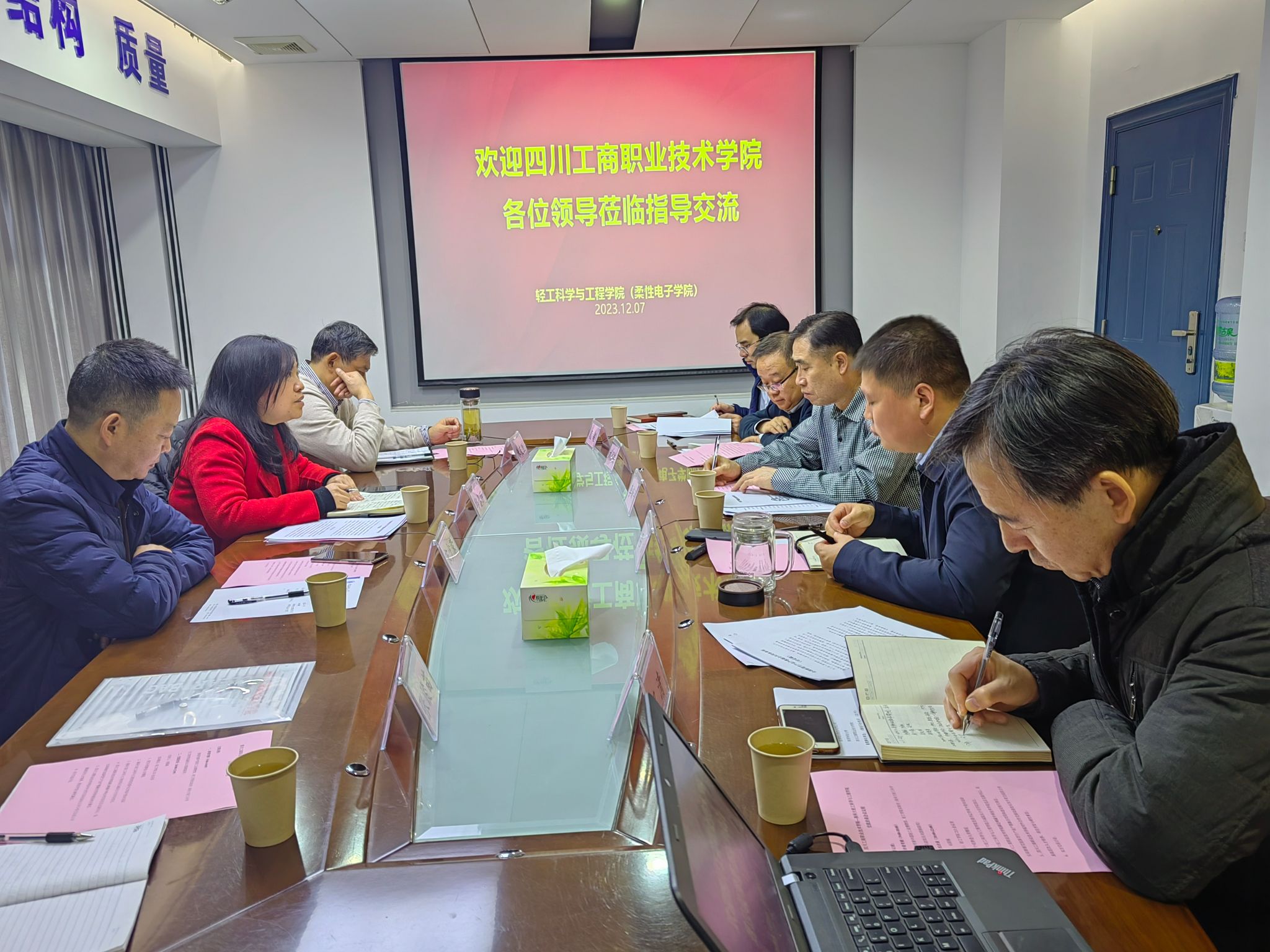 为了促进宜宾纸业股份有限公司、bet36365路检测中心和四川工商职业技术学院牵头组建的“全国新型竹产业产教融合共同体”的建设工作,加强校际交流与合作,12月7日,四川工商职业技术学院碳达峰碳中和技术学院院长邱春丽、对外交流合作处副处长宋少荣等一行4人来轻工科学与工程学院调研交流。轻工学院党委书记李新平、院长吕斌、副院长刘国栋和造纸系教师代表参加会议。会议由刘国栋主持。