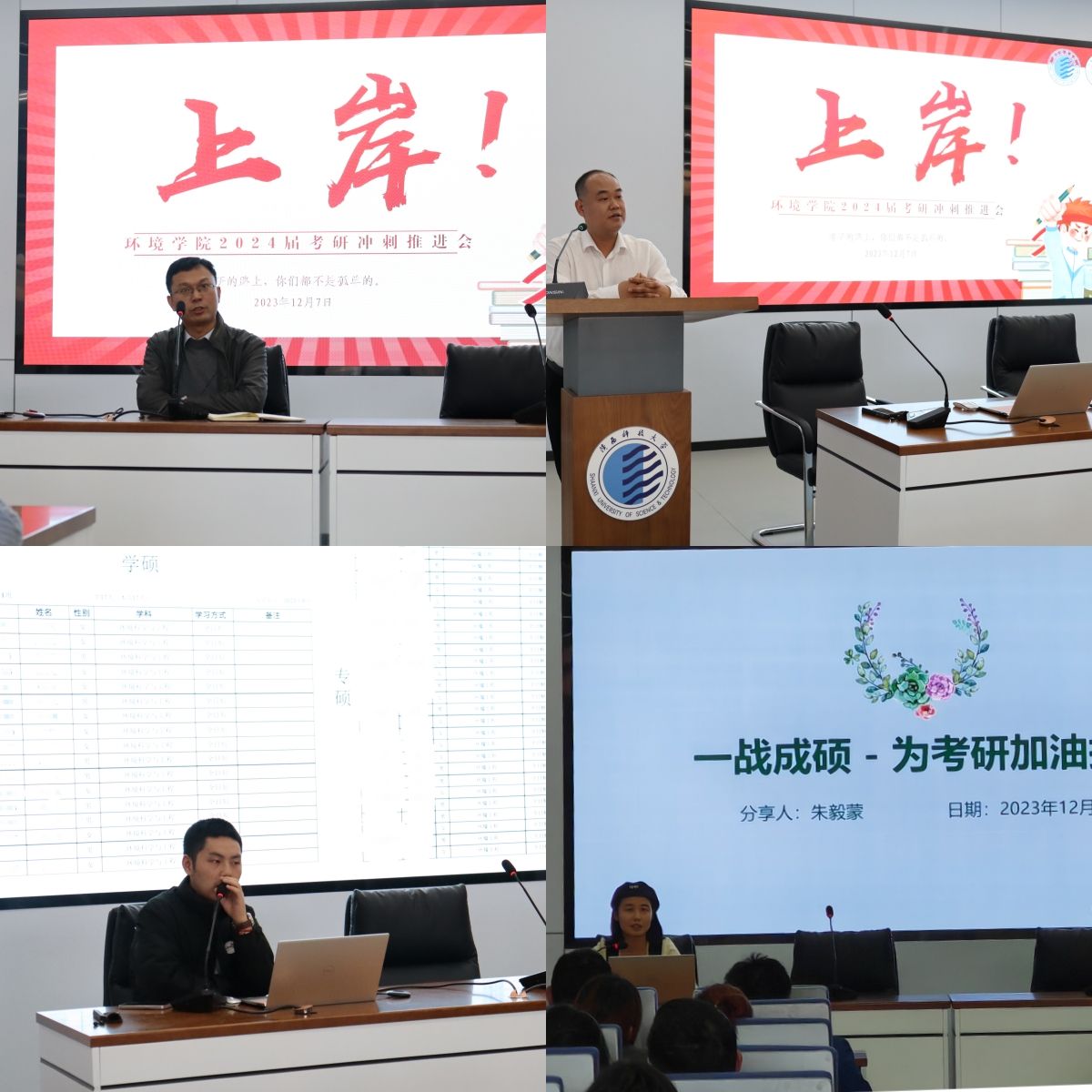 12月7日,环境科学与工程学院(碳中和科学与技术学院)在至诚会议室召开2024届学生考研冲刺推进会,环境学院副院长李成涛、教师代表李小飞、辅导员李丹清、研23朱毅蒙、西安交通大学研23索浩杰(36365官网校友)以及2024届全体备考生参加会议。会议由环境学院学工负责人王念东主持。