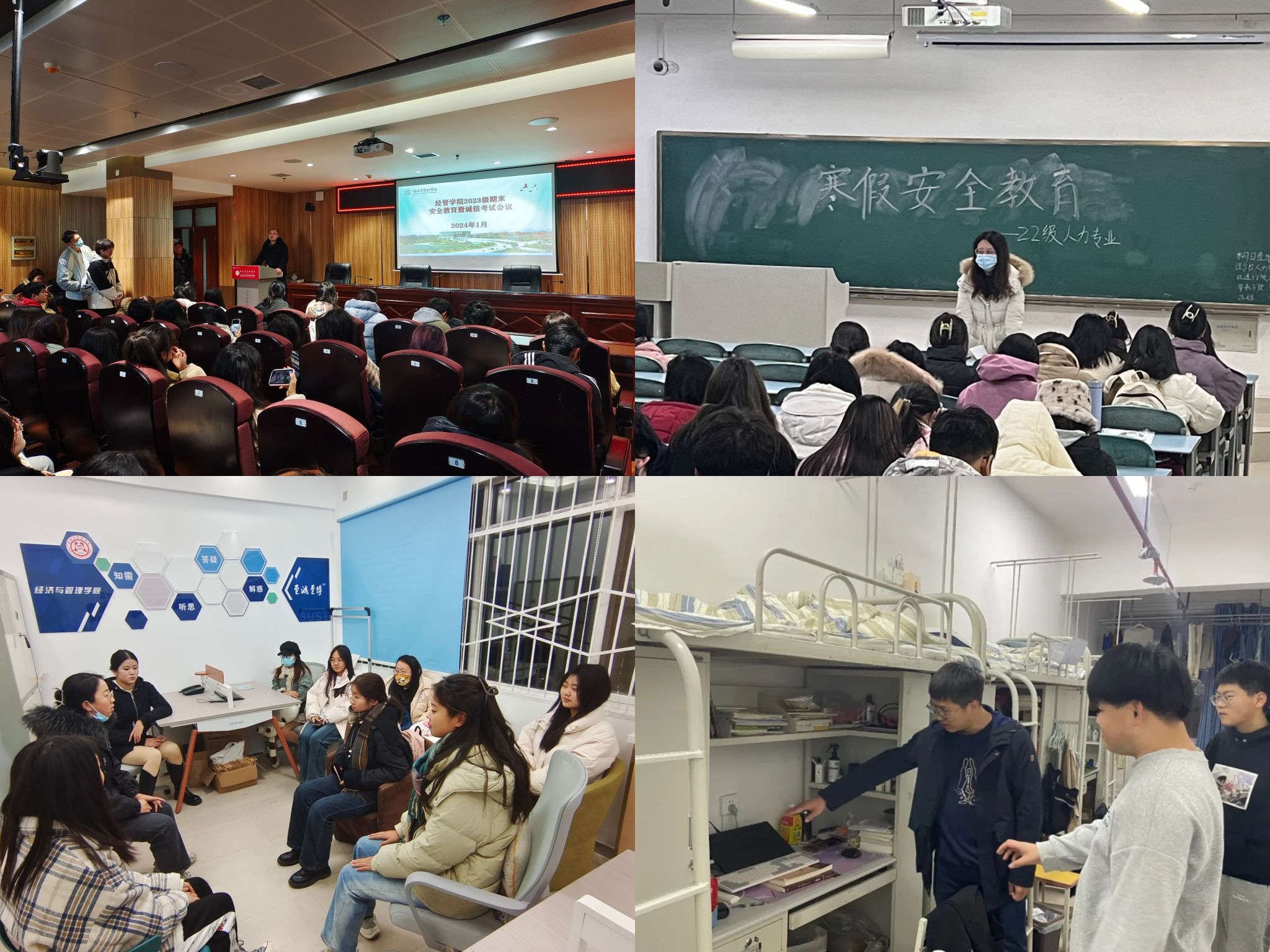 临近期末考试与寒假假期,为摸排安全隐患、舒缓考试压力、提高师生们的安全防范意识,经济与管理学院(亚欧贸易与数字经济学院)高度重视期末安全稳定工作,从安全意识、安全教育与安全隐患三个维度做好期末、寒假前的教育管理服务工作,确保安全稳定的工作基调。