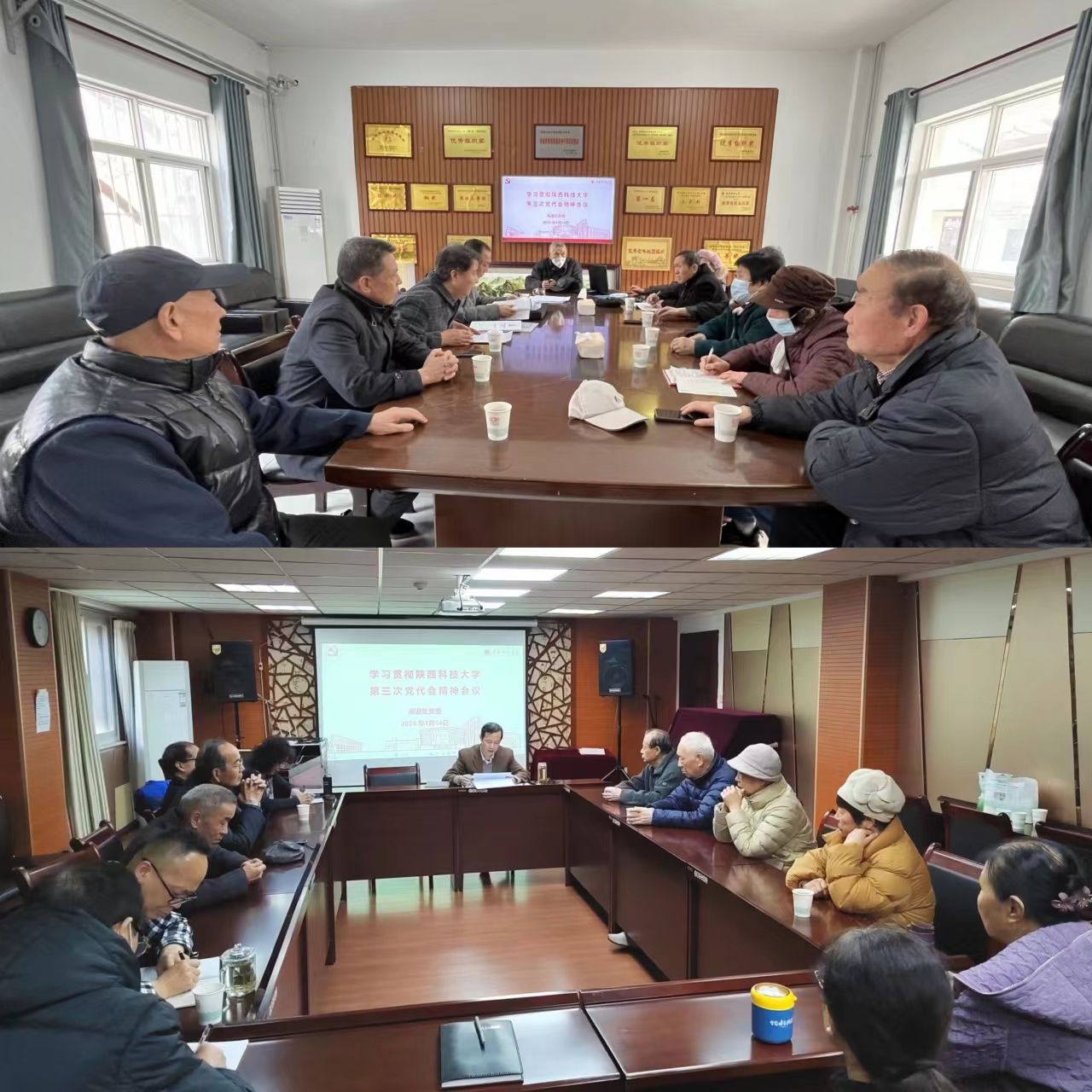 为深入学习贯彻落实学校第三次党代会精神,把全校离退休教职工的思想统一到第三次党代会精神上来,自1月14日以来,离退处党委先后召开党委扩大会议、党建工作会议、中心组专题学习会、党支部组织生活会,精心组织开展了学校第三次党代会精神系列学习活动;并在离退处公众号及时推送《一图读懂!bet36365路检测中心第三次党代会报告》《一图速览!bet36365路检测中心第三次党代会纪委工作报告》,以便老同志跟进学习。离退处党委以学深悟透第三次党会精神为目标,从充分认识学习贯彻落实学校第三次党代会精神的重大意义、深刻领会学校第三次党代会的精神实质与把党代会精神落到实处三个方面引领全体离退休党员和教职工学习。