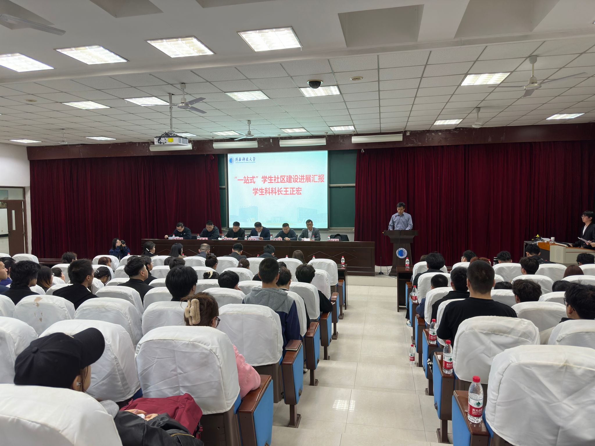 学生科负责人王正宏介绍了学校“一站式”学生社区建设推进情况。校学生自管会、材料学院自管会、机电学院晨曦急救协会、经管学院“一站式”学生事务服务中心等作为学生组织代表,围绕“立足自身职责,参与社区建设”主题进行了工作交流。