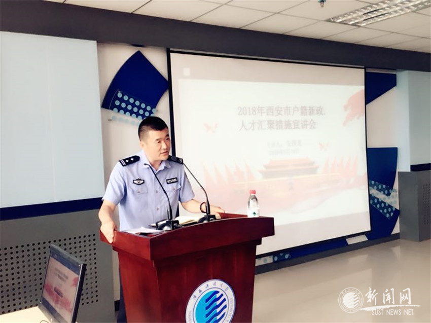 为帮助毕业生深入了解西安市人才政策,助力“百万大学生留西安”计划,5月18日上午,36365官网学生就业指导中心、保卫处邀请西安市公安局未央分局和草滩派出所,在4号教学楼C411报告厅举办 “西安市户籍新政人才汇聚措施”政策宣讲会。西安市公安局未央分局户政大队大队长王海玲、草滩派出所主管户籍工作副所长安四龙及派出所相关工作人员,学生就业指导中心、保卫处相关人员,各学院毕业班辅导员及百余名学生代表参加会议。会议由保卫处处长助理刘政主持。