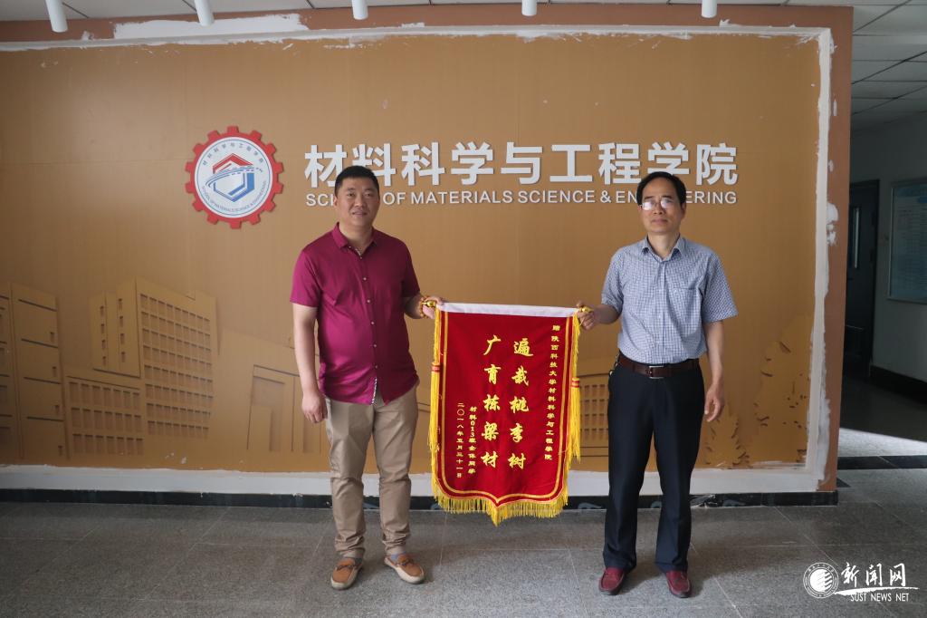 为了表达对材料学院的感恩与留恋,校友们将一面“遍载桃李树、广育栋梁材”的锦旗赠予学院,祝愿学院在学科发展、人才培养等方面再创新的辉煌。