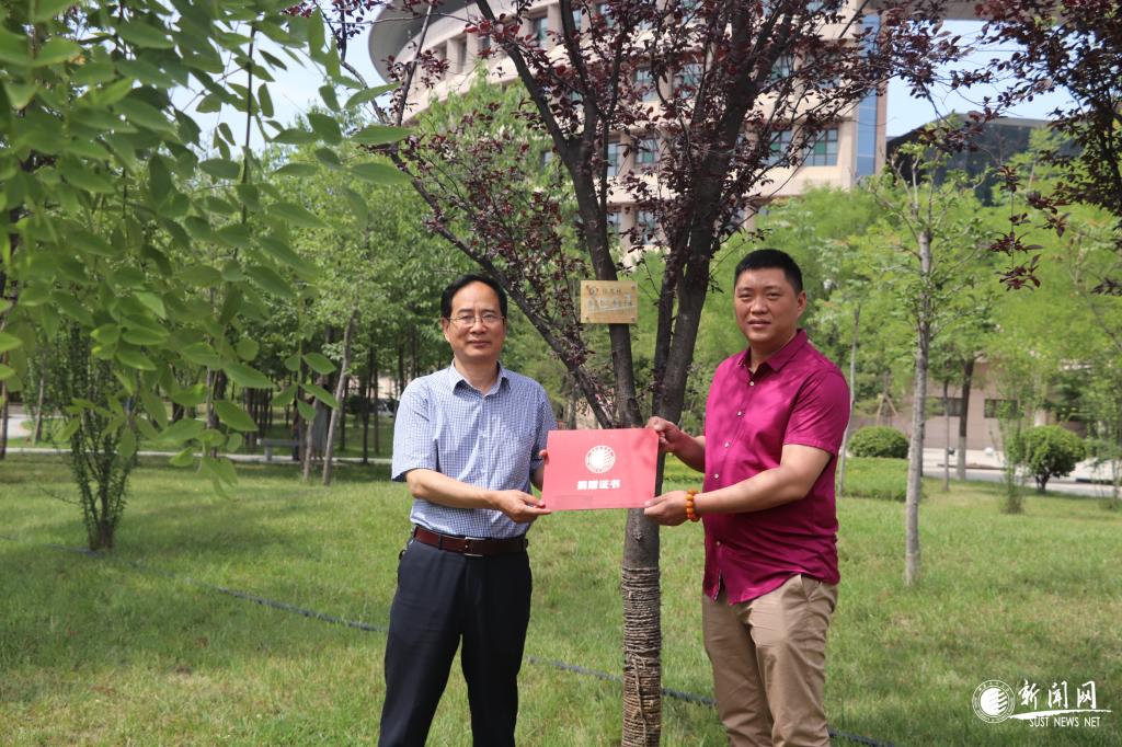 陈福生向校友简要介绍了校友林建设情况,并代表学校对校友的捐赠表示衷心感谢。同时,向校友颁发了捐赠证书。莘莘学子心,深深母校情。树木认捐表达了校友们对母校的挚爱、关心与支持,希望各位校友能够和母校共同发展,发扬陕科大“三创两迁”精神,不忘初心,在自己的工作岗位上脚踏实地、积极进取、勇攀高峰。