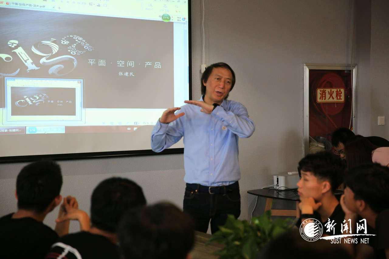张建民用亲切风趣的语言与在座师生积极互动,点亮跨界设计的激情,给在座师生留下了深刻的印象,赢得阵阵热烈的掌声。