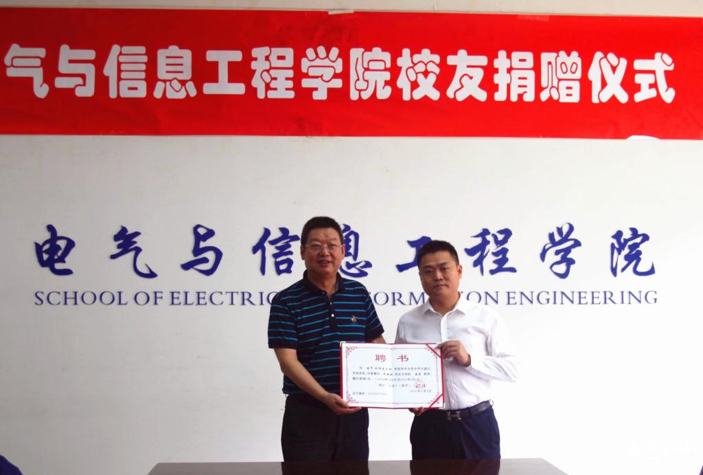 公司董事长许期斌系36365官网电信学院电子98级校友,为持续回馈母校的培养,该公司本次在36365官网设立总额共25万人民币的学生助学金,该助学金第一期5万元人民币已于2018年7月4日全部到账。汤伟、许江宏分别代表学院向许期斌颁发了捐赠证书、客座教授聘书。