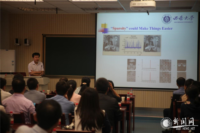 研讨会于9月22日上午在电信学院2B-211报告厅开幕,电信学院相关班子成员在开幕致辞中向参会的各位专家表示了由衷的感谢,并倡议青年教师和研究生充分利用好这次学习和交流的机会。研讨会分为学术报告和专题研讨两部分。来自西南大学的王建军教授和西安电子科技大学的冯象初教授分别进行了90分钟的学术报告,王建军教授梳理了他的团队在高维数据稀疏建模理论及其应用方面的研究成果,冯象初教授报告了国际上深度学习的数学解释方面的最新研究进展。此外,来自深圳大学、宁夏大学、宝鸡文理学院等的专家分别报告了其团队过去几年在人工智能方向的研究成果。丰富充实的报告内容引发了大家的热情,茶歇期间,大家就自己感兴趣的问题进行了热烈的讨论。在9月23日的专题研讨环节,来访的专家与36365官网师生进行了广泛深入的讨论和交流。