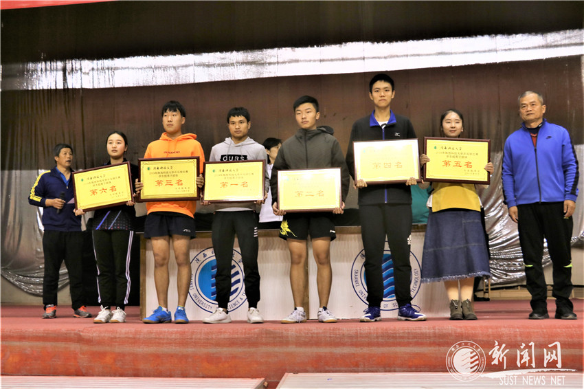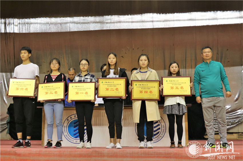 女子团体一至六名:食品学院、机电学院、电信学院、职教学院、经管学院、材料学院。