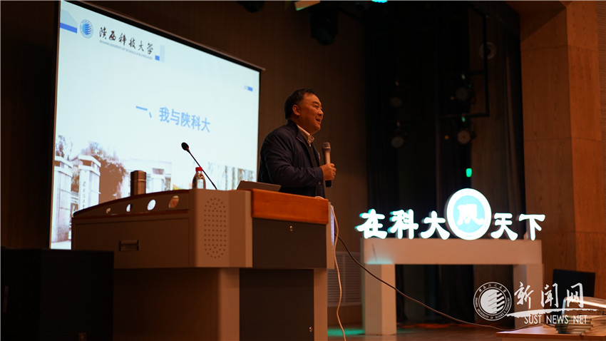 讲座伊始,董继先教授从“我与陕科大”谈起,分享了自己的求学,教学科研,行政工作等个人经历,特别介绍了自己与科大相识相知相伴的数十载。他以古人的人生观,价值观,世界观来表明自己的立场,又谈到了习近平总书记所提出的“命运共同体”“一带一路”等理念,由“家国情怀”谈到“科大情怀”,表达了自己对科大无限的热爱。