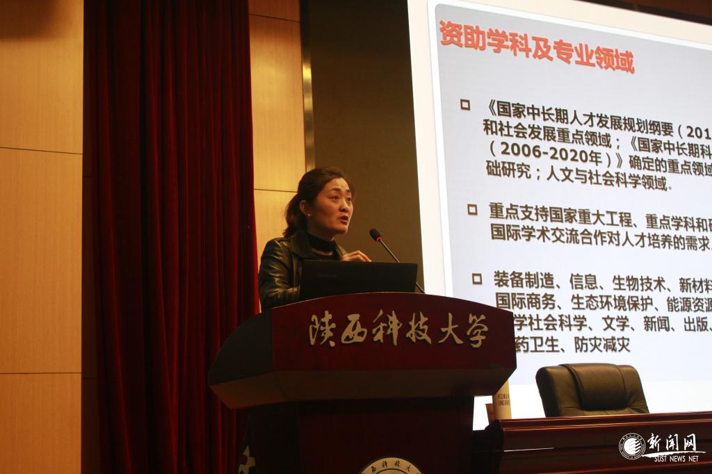随后,特邀嘉宾西安外国语大学国际处副处长樊花就2019年国家公派出国留学项目、申报资格、申请材料、申报流程等进行了细致的讲解。