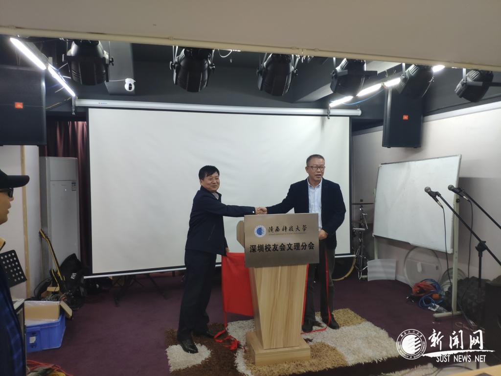 成立大会还进行了庄严神圣的揭牌与授旗仪式,刘建科书记与深圳校友会执行会长为文理分会揭牌与授旗。