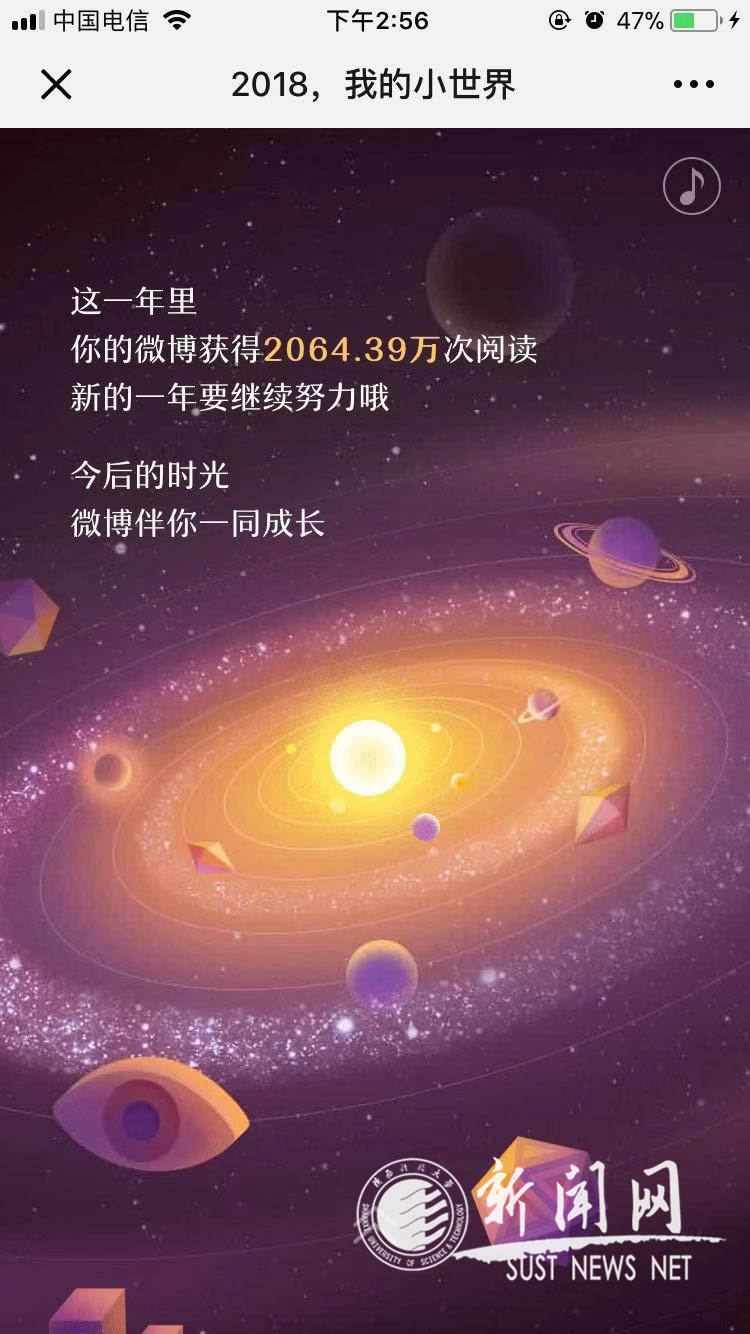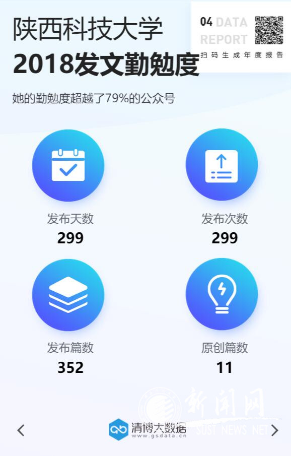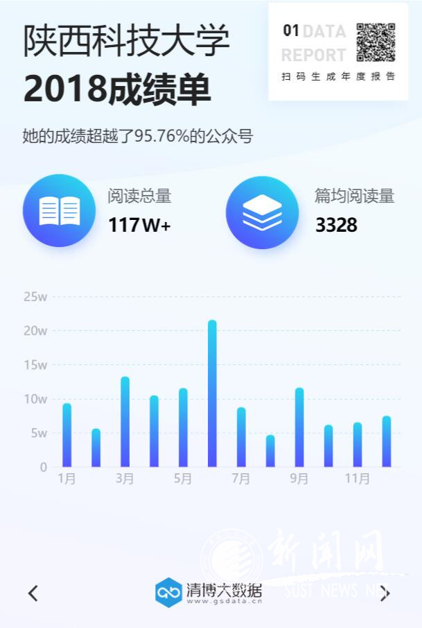 数据显示。微信平台以117万总阅读量,3328篇均阅读量的总成绩超越了95.76%公众号,其传播指数WCI 812.78超越了96%的公众号。2018年微信共发布299天,推送352篇图文,收获2万+个点赞,勤勉度超越了79%的公众号。其中《甲子校庆丨bet36365路检测中心宣传片、画册、大事记震撼首发》以当周4万+阅读数荣登最热文章,“人才”、“项目”、“学科”等词汇被评为36365官网年度热词。