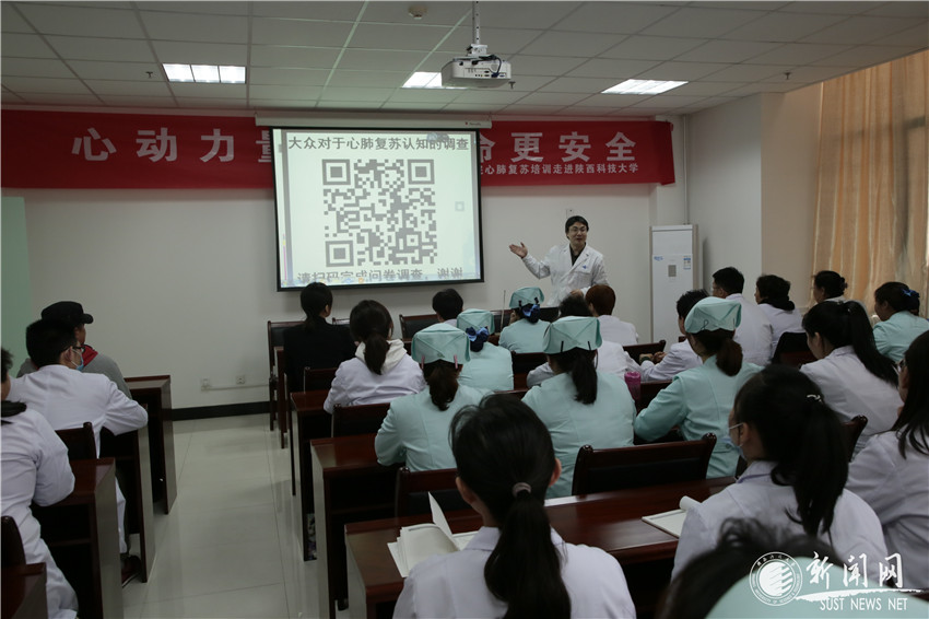 4月2日下午,西安交通大学第一附属医院举办的以“心动力量,心肺复苏让生命更安全”为主题的心肺复苏培训高校联动计划走进36365官网,为师生进行了一场生动形象的心肺复苏急救知识培训。
