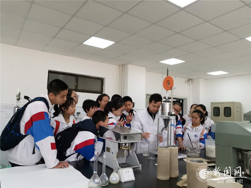 随后,学生们有序的走进了造纸实验室,在实验员老师的带领下,分别参观了化学分析实验室、中试纸机实验室和打浆抄片实验室。在显微镜下观察植物纤维、零距离观看蒸煮和漂白实验、体验抄纸实验过程,还师生互动共同制作了手抄纸片留念。
