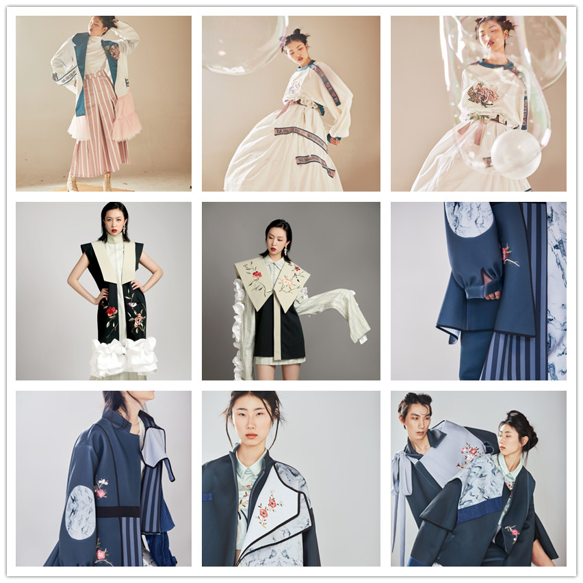 本次发布会的设计作品共23个系列,110余套作品。作品《柒》灵感来源于陕西刺绣纹样凤凰,主要是传达出陕西刺绣的美好寓意,有吉祥、吉利、尊贵、博大,相传鱼的记忆只有七秒钟,七秒之后便会重新拥有幸福的记忆,此系列服装也是想传达一种新旧的变化;《秦华簌月》灵感来自于陕西刺绣满月系列纹样,选取寅虎与酉鸡作为主要的刺绣图案,寓意健康、强壮、勇敢、吉祥。白与黑干净分明的色彩透露着纯洁,美好的寓意。《漠》本系列作品通过将陕西刺绣的图案和技法与服装设计中的创意面料及廓形设计相结合。融合手工刺绣,使面料工艺与陕西刺绣的匠人精神相结合,将“传统与现代” “传承与创新”完美呼应,研发一系列的创意服装,达到“陕西刺绣,一带一路”的主题思想。