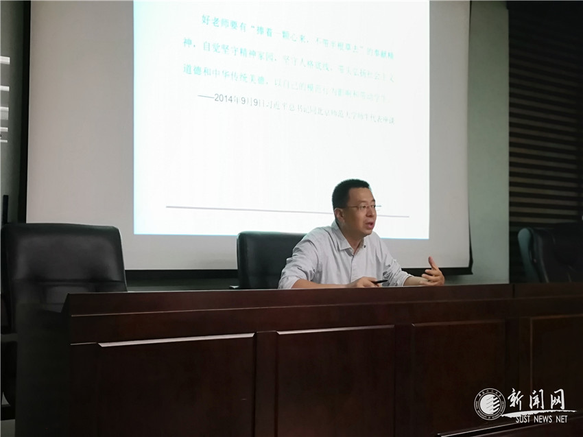 为进一步加强师德师风建设,落实教育部、陕西省及学校关于师德师风建设工作的有关要求,6月5日下午,电气与控制工程学院邀请学校党委教师工作部部长助理高璐为全院教职工做了题为《德为师之本,师以德为先》的专题报告,就《bet36365路检测中心教师师德失范行为负面清单及处理办法(试行)》(以下简称《办法》)进行了详细解读。电控学院全体教职工参加了此次报告会,会议由学院党委副书记(主持工作)乔明哲主持。