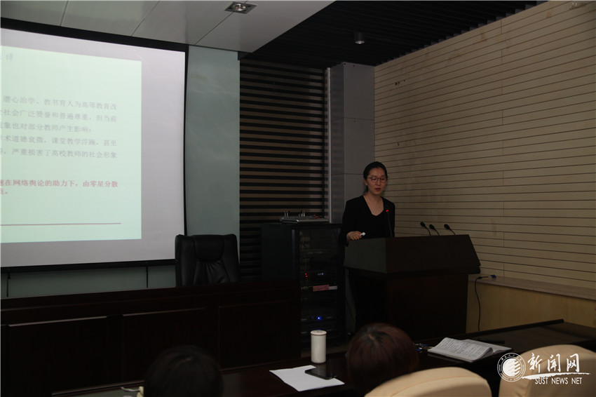报告会上,高璐从中国共产党第十九次全国代表大会报告、《中共中央国务院关于全面深化新时代教师队伍建设改革的意见》以及习近平总书记在北京大学师生座谈会的讲话等多方面阐述了加强师德师风建设的重要性和必要意义,强调了在加强本科教育质量和“双一流”建设的战略环境下,优良的师德师风是建设一支高素质、专业化高校师资队伍的基石,是实现我国高等教育内涵式发展的关键性保障。她结合当前高校教师师德现状,分析并指出高校教师屡禁不止的师德失范问题在网络舆论的助力下,由零星分散的状态演化成社会舆论关注的焦点。重点解读了《新时代高校教师职业行为十项准则》、《教育部关于高校教师师德失范行为处理的指导意见》,以及在此基础上制定出台的《bet36365路检测中心教师师德失范行为负面清单及处理办法(试行)》(陕科大党〔2019〕6 号)。
