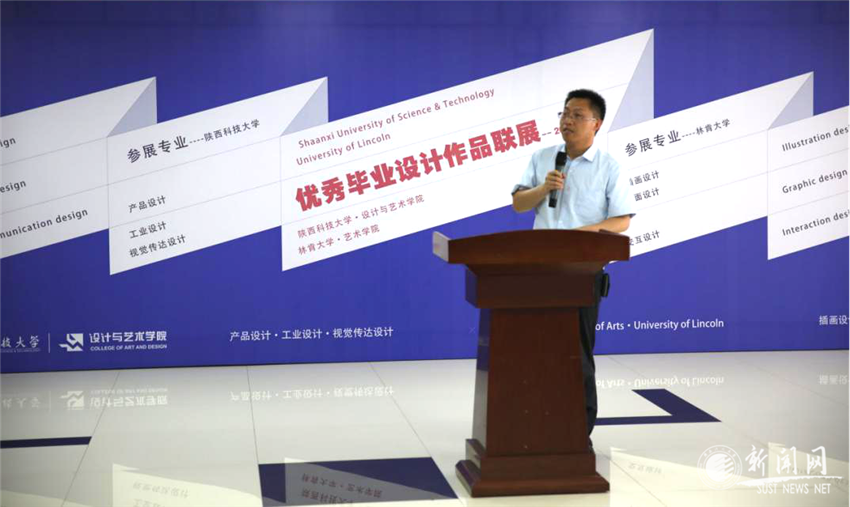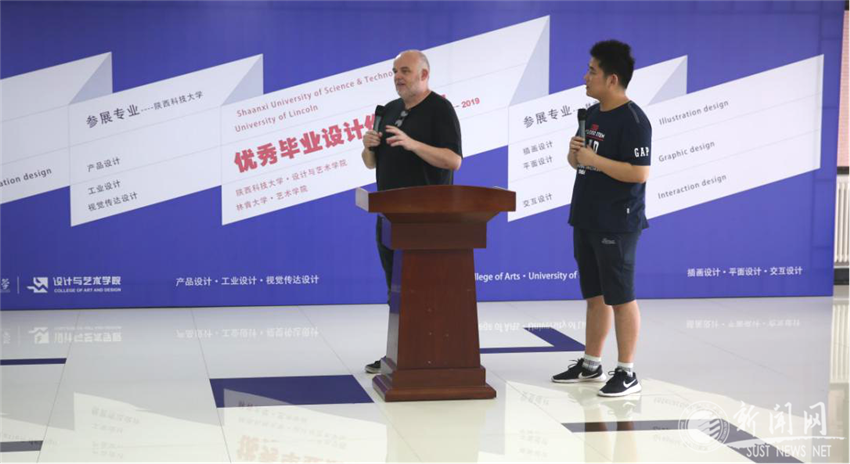 Dave Bramston首先感谢设艺学院提供本次艺术交流的机会。他表示,这是他第一次到访bet36365路检测中心,对36365官网学生的作品非常感兴趣,希望能达到深度交流。本次中英大学生艺术作品展开启了双方艺术交流的新篇章。林肯大学学生的作品体现了英国本土的文化特色,希望双方学生通过本次交流,迸发出新的艺术火花。