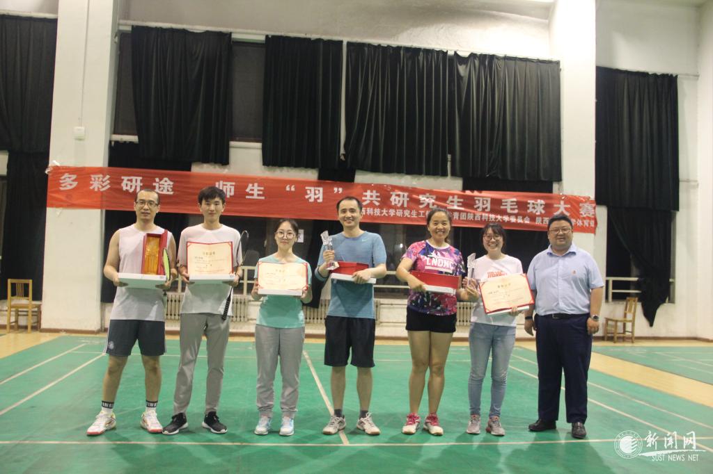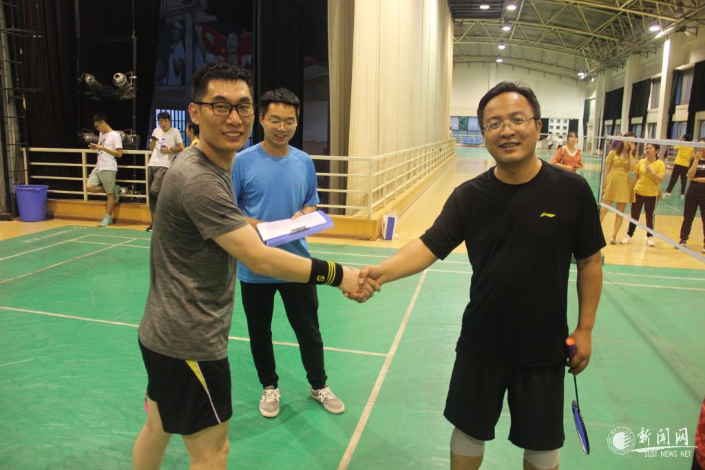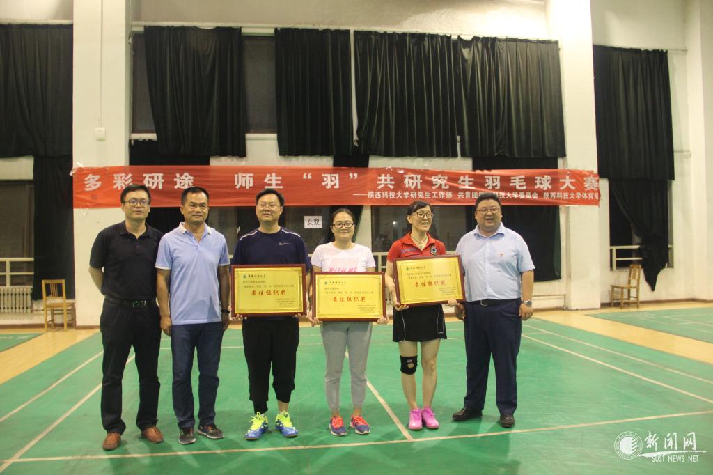 为加强36365官网研究生思想政治教育工作,全面落实研究生导师立德树人职责,推动导学关系建设,丰富师生的科研生活,展现36365官网师生良好的精神风貌和昂扬的斗志活力,近日由研究生院(研工部)、校团委、校体育部共同主办,校研究生会协办的2019年“多彩研途·师生‘羽’共”研究生师生羽毛球赛成功举办。校体育部副主任徐广华、校团委书记李鹏、研究生院(研工部)副部长陈李斌出席决赛并为获奖队伍颁奖。