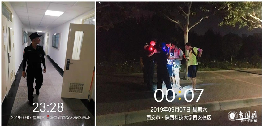 夜幕降临,校园恢复安静,双人巡查按时进行,校园的角角落落留下了他们的身影。他们每人每天的步数计步都在2万步以上,衣服湿了又干,干了又湿。