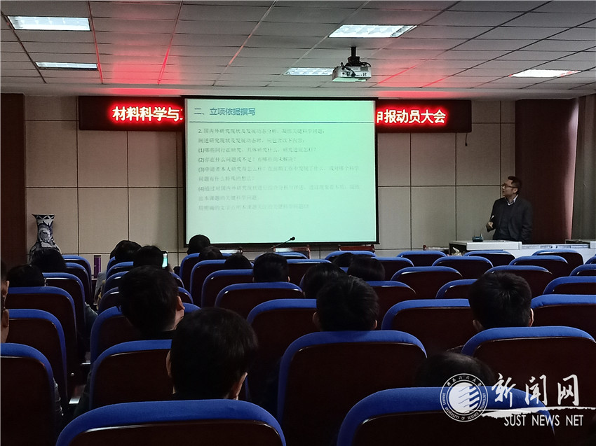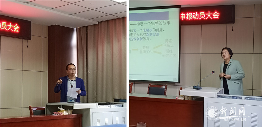随后,教师代表宋浩杰围绕科学问题来源、立项依据撰写、实施方案解析、科学意义阐述、创新点揭示和参考文献选取等,对国家自然科学基金项目的申报技巧进行了认真的指导。教师张佩在动员大会上分享了自己申报国家自然科学基金的经验。他指出材料的应用领域要写得详细易懂,突出创新点和亮点。教师许宁通过自己基金申报书修改前后的对比,让大家对图文的精致制作和文字的加工润色有了深刻的感悟。