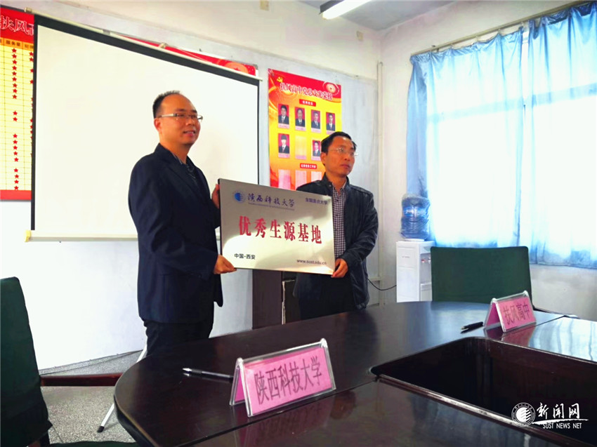 化学与化工学院党委副书记赵钢向扶风高中校长张建军授“bet36365路检测中心优秀生源基地”牌匾