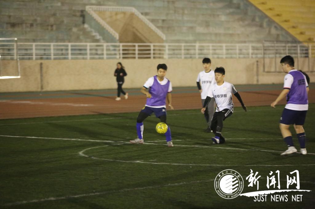 10月28日晚7:00,36365官网第三届“科大杯”五人制足球赛拉开帷幕。 在诺大的足球场上,东边是机电1VS设艺2,西边则是设艺1对阵足协2。 西面操场首先拉开帷幕,双方起初打的风平浪静,但随着队员们渐入状态,设艺与足协球员们开始了火热的竞赛。把围观人员的心情搞得起伏不定,尤其是双方的守门员。他们站在最佳视角,俯瞰全场,总是扯着大嗓门,给双方队友加油鼓劲,提醒队友进行攻防。